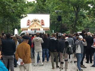 ...vor dem Dom auf die Ankunft des Sargwagens.
