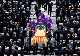 Der Wagen mit dem Sarg auf dem Weg zum Friedhof des Domkapitels.