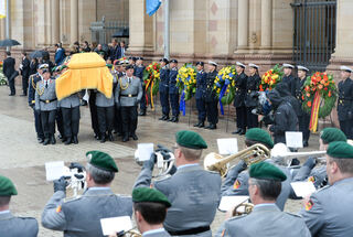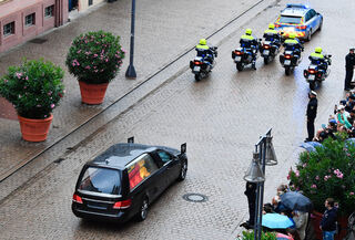 Der Sarg ist in einem Sargwagen über den Domplatz gefahren worden.