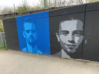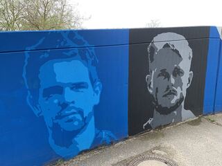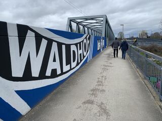 Das von "Doppelpass", neben den Ultras Mannheim größter Fanclub des SV Waldhof, am südlichen Ende der Brücke über die Feudenheimer Schleuse gefertigte Kunstwerk. Bild: Steffen Mack