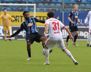 Mohamed Gouaida am Ball vor Mirko Boland.