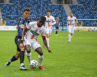 Marcel Costly im Zweikampf mit Braydon Manu.
