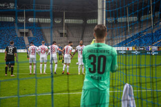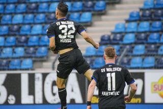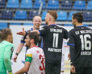 Der Waldhof freut sich nach dem Spiel über den 3:2 Sieg.