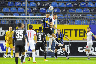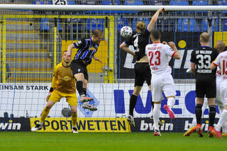 Gerrit Gohlke bleibt Kopfballsieger im Duell mit Stipe Vucur.