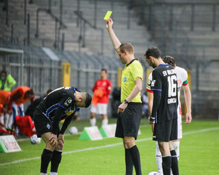 Arianit Ferati sieht nach einem Foulspiel die Gelbe Karte.
