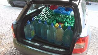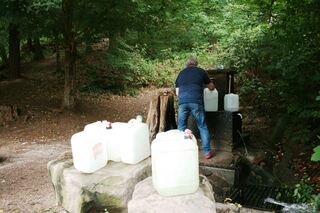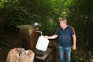 Wie er füllen sich regelmäßig zahlreiche andere Menschen ihr Trinkwasser an dem Brunnen ab - der kleine Parkplatz ist in der Regel zugestellt mit Autos der Wasserholer.