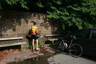 Doch an heißen Tagen nutzen auch Sportler wie Heiko Schneider die Brunnen im Neckartal als Erfrischung - hier ein Stück weiter in Richtung Heidelberg.