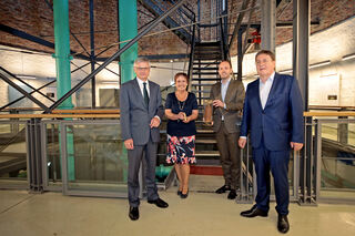 Georg Müller (v.l.), Patricia Lips, Nikolas Löbel und Bürgermeister Quast werben um Zuschüsse.