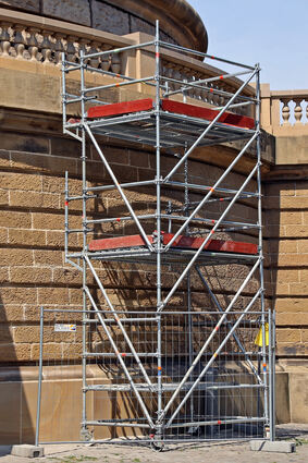 Immer ein Drittel des Wasserturms ist ab 2021 aber von einem hohen Gerüst mit Planen umgeben, mindestens drei Jahre lang.