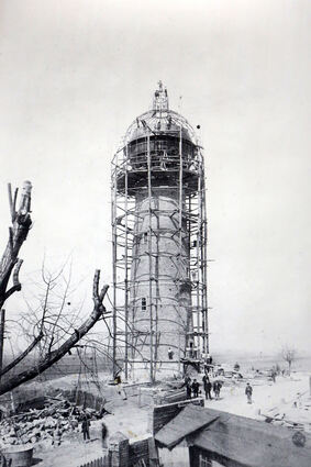 Reproduktion einer Fotografie vom Bau des Wasserturms.
