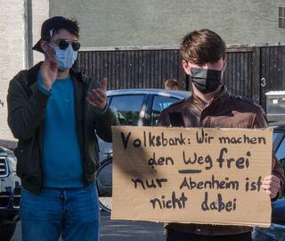 ... in den sozialen Netzwerken vor der gemeinsamen SB-Filiale von Volksbank und Sparkasse.