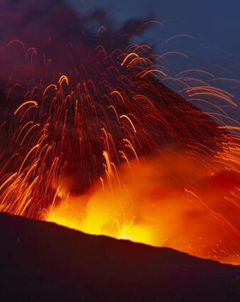 Bei einem Vulkanausbruch spuckt der Vulkan Magma aus. Der Grund dafür liegt etwa 100 Kilometer tiefer: Weil es unter der Erdoberfläche so heiß ist, dehnt sich das flüssige Gestein aus, der Druck wird immer stärker. Wird ein kritischer Punkt überschritten, bricht der Vulkan aus. Sobald das Magma bei einem Vulkanausbruch aus der Erde quillt, heißt es Lava.