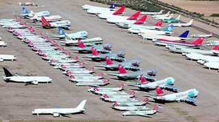 Einige Meilen im Nordwesten taucht ein weiteres Flugfeld auf. Boeing 757, DC-10 und Dutzende anderer Jets stehen dicht an dicht auf betoniertem Untergrund oder auf dem knochentrockenen Wüstensand, der so fest ist, dass die Reifen der schweren Maschinen nicht einsinken.