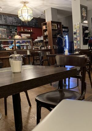 Dafür bekommt ihr hier stabiles Wlan und die für Cafés mittlerweile typischen Leckereien wie NY-Style Cheesecake, Muffins und belegte Bagel. Packt einen vor lauter Produktivität also der Hunger, ist man bestens versorgt. Macht der Akku schlapp, sieht es allerdings schlecht aus. Denn Steckdosen gibt es keine.
