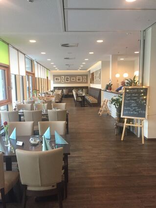 Im barrierefreien Restaurant finden 100 Personen einen Platz, bei schönem Wetter können bis zu 80 Gäste auf den Terrassen im Innenhof und auf dem Taunusplatz essen. Auch private Feiern oder Tagungen bietet das Restaurant an. Und dass, obwohl die zwölf Angestellten auch die Bewirtung des angrenzenden Pflegeheims übernommen haben.