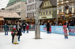 Eine stimmungsvolle Eislandschaft präsentiert Heidelberg auf dem Karlsplatz. Mit Blick auf das Schloss garantiert die Echteis-Bahn vom 24. November 2025 bis zum 11. Januar 2026 Schlittschuhspaß in einmaliger Atmosphäre. Wer genug Runden gedreht hat, kann sich wunderbar an Leckereien wie gebrannter Mandeln oder Punsch stärken. Umgeben von historischen Universitätsgebäuden, liegt die Bahn in einem kleinen Weihnachtsmarkt eingebettet.