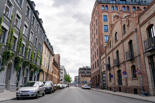 An der Hafenstraße im Szeneviertel Jungbusch reihen sich zahlreiche Cafés, Restaurants sowie Kultur- und Wohngebäude aneinander. Start-ups, die Popakademie und Kreativschaffende haben hier ihren Sitz. Unterschiedliche Baustile, von charmanten Altbauten bis hin zu moderner oder industrieller Architektur, prägen das vielseitige Straßenbild. Parallel zur Hafenstraße verläuft ein Fußweg am Verbindungskanal entlang – ein beliebter Treffpunkt, vor allem bei Studierenden.