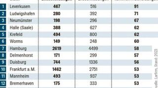 Gleich drei Städte aus der Metropolregion Rhein-Neckar finden sich unter den ersten 15 der Liste. Nach Leverkusen als „Scheidungshauptstadt“ folgt Ludwigshafen auf Platz zwei: Auf 392 Eheschließungen kamen demnach 280 Scheidungen. Das entspricht einer Quote von 0,71. Auf 100 Eheschließungen kamen demnach 71 Scheidungen. Damit war die Scheidungsquote dort 2023 ebenfalls überdurchschnittlich hoch. Und nicht nur das: In der Statistik der Bundesländer landet Rheinland-Pfalz auf Platz sechs mit einer Quote von 38,13. Der Stadtstaat Hamburg führt die Liste der Bundesländer an – mit 58 Scheidungen gegenüber 100 Eheschließungen.