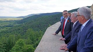 Auch im Rathaus der Stadt Neustadt war die Guerilla-Taktik der ganz in weiß gekleideten Menschenmenge Gesprächsthema Nummer ein. Die zentrale Frage lautet: Wie mit solchen Andersdenkenden umgehen? Gerade ein Demokratiefest müsse gegensätzliche Standpunkte zulassen, verteidigte der rheinland-pfälzische Innenminister und Vorsitzende der Stiftung Hambacher Schloss, Roger Lewentz, die moderate Haltung, schließlich auch den Zug von rund 800 Weißgekleideten zum Schloss hinauf als Versammlung zuzulassen. Während einer Podiumsdiskussion in der Neustadter Innenstadt habe man einen Redner der Protestierer zu Wort kommen lassen, berichtete Lewentz am Sonntagabend während der Verleihung des Hambacher Friedenspreises an Ex-Bundespräsident Joachim Gauck. Diese Ansichten des Russland-Lobs bei gleichzeitiger Diffamierung der Ukraine anzuhören, sei zuweilen eine Zumutung und schwer zu ertragen gewesen. Als man schließlich mit dem Mann in die Diskussion einsteigen wollte, habe dieser sich umgedreht und sei gegangen. Dies zeige, an einem echten Dialog hätten diese Menschen kein Interesse.