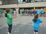Umso mehr begeistern sie die Auftritte der Schülerinnen und Schüler. Nach dem Trommelauftakt wirbeln die Cheerleaderinnen der vierten Klassen über den Hof und zeigen eine perfekt einstudierte Chorografie. Und dann bekommen auch Schader und Engelhardt Gelegenheit auszuprobieren, wie viel Spaß das Hüpfen und Tanzen macht: Alle Gäste sind eingeladen, beim Bewegungslied mitzumachen. Der eigentliche Spatenstich ist dann fast Nebensache. Die Kinder verabschieden sich in ihre Klassen, während sich die Großen fürs Foto bereitmachen.
