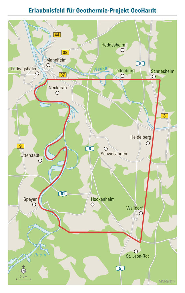 Wie berichtet, wollen beide Unternehmen in einem Joint-Venture-Projekt namens GeoHardt die heißen Quellen in den Schichten tief unter der Region anzapfen, um die Region mit Fernwärme zu versorgen. GeoHardt ist nur eines von mehreren Vorhaben, die sich in die heiße Tiefe des Oberrheingrabens bohren wollen. Im Gegensatz zu dem Karlsruher Unternehmen Vulcan will GeoHardt jedoch - derzeit - nicht auch gleichzeitig Lithium aus dem Tiefenthermalwasser gewinnen. Auf der anderen Rheinseite entwickeln die Stadtwerke von Speyer und Schifferstadt gemeinsam ebenfalls ein Tiefengeothermieprojekt.