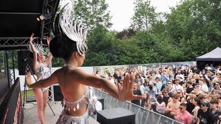 „Da haben wir uns unter die Sonnenschirme gestellt und dort weitergetanzt“, berichtete Lisa Rothmeyer. „Überhaupt ist es durch den bewölkten Himmel nicht zu heiß und so haben wir bestes Wetter zum Tanzen“, fügte Benjamin Schuster hinzu.