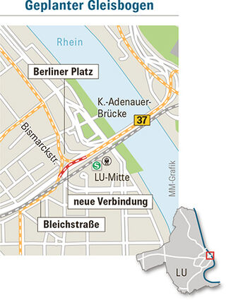 Ludwigshafen. Wenn ab 2026 in Ludwigshafen die Hochstraße Nord abgerissen wird, dann muss der gesamte rheinüberschreitende Straßenbahnverkehr über die Konrad-Adenauer-Brücke abgewickelt werden. Vier Jahre lang wird die Kurt-Schumacher-Brücke nach den derzeitigen Plänen für die Bahnen gesperrt bleiben. Damit die südliche Verbindung in diesem Zeitraum leistungsfähiger ist, soll ein zusätzlicher Gleisbogen von der Adenauer-Brücke in Richtung Süden gebaut werden. Dieser ermöglicht Straßenbahnen eine direkte Abfahrt zur Trasse auf der Saarlandstraße und damit in die südlichen Stadtteile beziehungsweise zum Hauptbahnhof, ohne durch die Innenstadt rollen zu müssen.