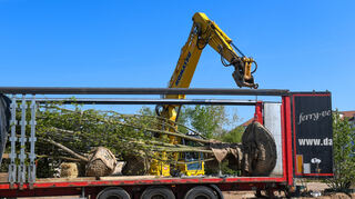 Mannheim. Sie sind bis zu zwölf Meter lang: Per Tieflader kamen gestern 19 Bäume aus Holland auf dem Gelände der Bundesgartenschau 2023 an. Es sind die bisher größten Neupflanzungen auf dem Spinelli-Areal. Gesetzt werden sie in der sogenannten Parkschale, dem Übergang zum Neubaugebiet in Käfertal-Süd und im Rott. Verschiedene Sorten Ahorn sind ebenso darunter wie Amberbäume, Tulpenbäume oder die Kaukasische Flügelnuss.