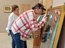 Derweil wissen Kropmanns und Inge Herold längst, wo das Werk platziert wird – denn Kartons in der richtigen Größe der Gemälde hängen überall an den Wänden. Mit diesen Dummys, erläutert Herold, planen sie den Aufbau der Ausstellung und die richtige Abfolge an den Wänden. Für die endgültige Hängung bleiben nur 14 Tage vor der Ausstellung – lediglich diesen Zeitraum deckt die Versicherung ab.