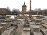 Als im Oktober die Arbeiten anfingen, wurde zunächst das Fontänenbecken, das mit 1050 Betonplatten abgedeckt ist, ausgeräumt. „Zwischen den Platten und dem Beckenboden sind die Armaturen und die Düsen für die Fontänen“, erläutert Baumann. Dafür haben alle Platten passgenaue Öffnungen, „daher muss man sie danach wieder exakt so verlegen“. Also haben die Bauarbeiter die Platten nach dem Vorbild der Mannheimer Quadrate mit Buchstaben und Zahlen nummeriert und zudem farblich gekennzeichnet, ehe sie per Kran aus dem Becken gehoben und auf einer Wiese aufeinandergestapelt wurden.