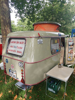 Julius und Heidl aus Unterfranken haben ihren VW-Bus in einen Camping-Wagen umgebaut - Küche und Bett inklusive. Damit war das Paar sechs Monate unterwegs, unter anderem im Balkan, in Italien und Griechenland. „Wir sind 19 000 Kilometer in einem halben Jahr gefahren“, sagt Julius. Auch Christoph Weiskircher aus dem Saarland kann in seinem Wohnwagen, den er mit seinem Käfer nach Mannheim gebracht hat, gut schlafen. Erstanden hat er seinen Käfer aus dem Jahr 1965 auf einer Tupperparty. Die Treffen in Mannheim gehören bei ihm zur Tradition. Aus dem Elsass angereist sind Claude Stricker und Michael Voltzenlogel, dessen Käfer aus dem Jahr 1962 stammt. Strickers himmelblaues Gefährt ist Baujahr 1961. Die beiden Männer lieben das Geräusch des schnurrenden Motors.