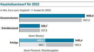 - Bei den Einnahmen, zu denen etwa die Gewerbesteuer gehört, geht der Entwurf von knapp 70 Millionen Euro weniger aus als im Vor-Corona-Jahr 2019. Die Stadt verfügt allerdings aktuell – durch Rücklagen und Geld, das für Projekte eingeplant, aber noch nicht genutzt ist – über hohe liquide Mittel. Deshalb kann sie sich die Investitionen trotz der Mindereinnahmen zumindest im Moment auch noch leisten.