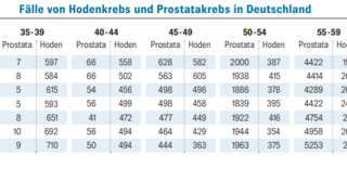 Deutschlandweit diagnostizieren Urologinnen und Urologen Hodenkrebs jährlich etwa 4000 Mal. Auf das Jahr hochgerechnet erkrankten so neun von 100 000 Männern - eine vergleichsweise seltenere Tumor-Diagnose, sagt Michel. Darauf verweist auch Barhoum. Er entdecke jährlich etwa vier Tumore an Hoden. „Wir haben dagegen im Monat etwa 20 Männer mit Prostatakrebs“, sagt er. „Es sterben im Jahr mehr Männer an Prostatakrebs als Hodentumore überhaupt diagnostiziert werden.“