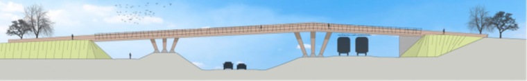 Die neue Fuß- und Radwegebrücke über die Sudetenstraße soll im August 2024 die Stadtteile Vogelstang, Käfertal und Feudenheim mit dem Radschnellweg auf Spinelli verbinden. Die Brücke mit einer Länge von 112 Metern und einer Breite von etwa 6,50 Metern wird die östlichen Stadtteile an die Innenstadt anbinden. Ihre Gestaltung mit asymmetrischen Hohlkörpern erinnert an die Stahlbauten (Panoramasteg) auf dem ehemaligen BUGA-Gelände.