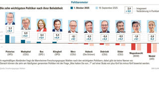 Liegt das daran, dass die Regierungsparteien nach Wahlen in der Regel eher in den Umfragen Verluste hinnehmen müssen und die Oppositionskräfte davon profitieren? „Ich sehe da keinen Automatismus. Die Ampel hat nach ihrem Wahlsieg 2021 sogar zugelegt“, sagt Matthias Jung von der Forschungsgruppe. Allerdings: „Es hängt schon davon ab, wie die Regierung nach dem Wahlsieg in den Sattel kommt, und da hatte Schwarz-Rot ja enorme Probleme. Und natürlich verschlechtern sich die Umfragewerte, wenn eine neue Regierung die für die Menschen grausamen Sachen beschließt“, so der Mannheimer Wahlforscher.