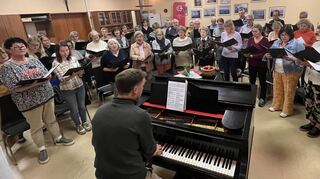 Dabei sei es eine besondere Herausforderung für den Chor, die Lieder, die der einzelne Sänger in erzählender Weise vorträgt, mehrstimmig mit rund 50 Sängern vorzutragen.
