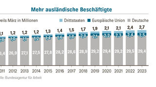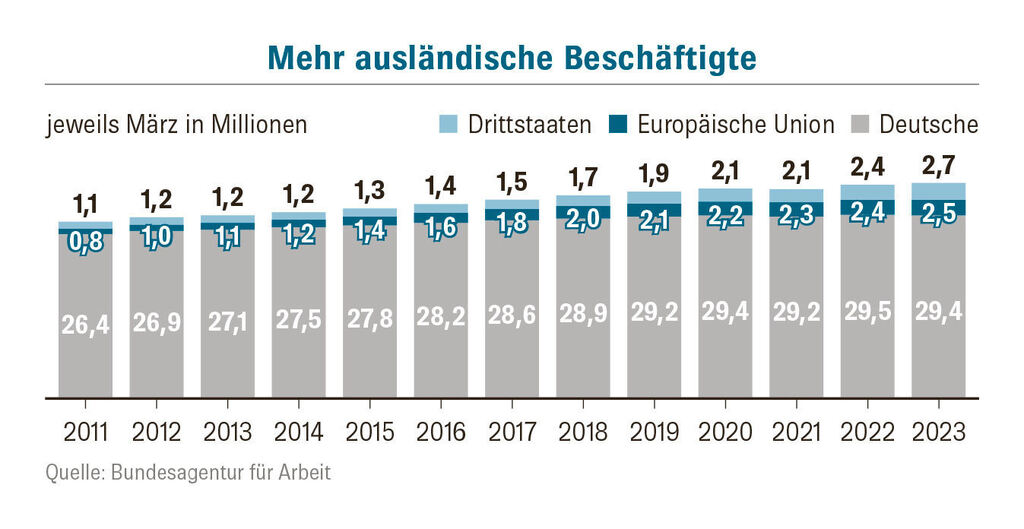 - Ohne Zuwanderung würde das Erwerbspersonenpotenzial in Deutschland bis 2035 um geschätzt sieben Millionen Menschen sinken.
