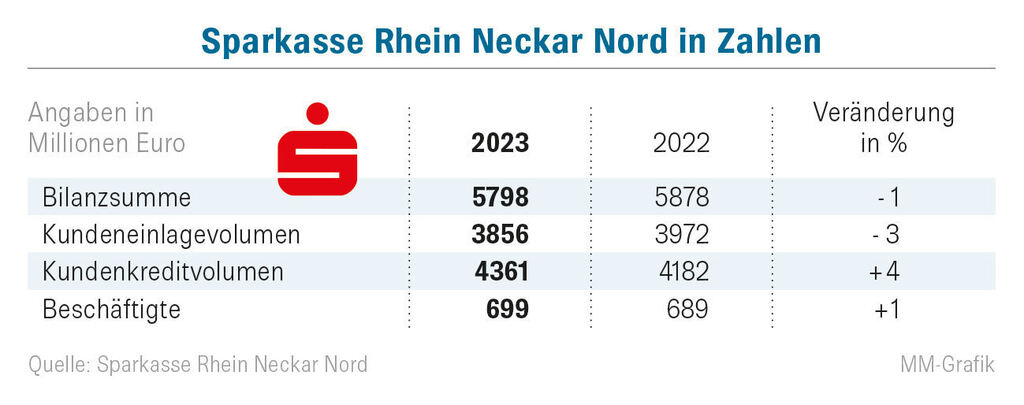 Wie sehr die Digitalisierung Bankgeschäfte prägt, spürt die Sparkasse immer mehr. Kundinnen und Kunden nutzen verstärkt mobile Angebote. 155 000 Girokonten führte die Sparkasse Ende 2023 (plus 1,4 Prozent). 130 000 davon wurden auch oder ausschließlich online (plus 8,2 Prozent) genutzt, 55 000 über die App „Sparkasse“ (plus 18,7 Prozent). Aktuell ist die Sparkasse Rhein Neckar Nord an 48 Plätzen der Region mit 29 Filialen und 19 Selbstbedienungsstandorten vertreten. Früher dürften es deutlich mehr gewesen sein. Kleiber hebt hervor, seit 2019 sei keine Filiale mehr geschlossen worden. Wie es in Zukunft aussieht? Das hänge vom Kundenverhalten ab. Ausschließen mag der Vorstandsvorsitzende nichts.